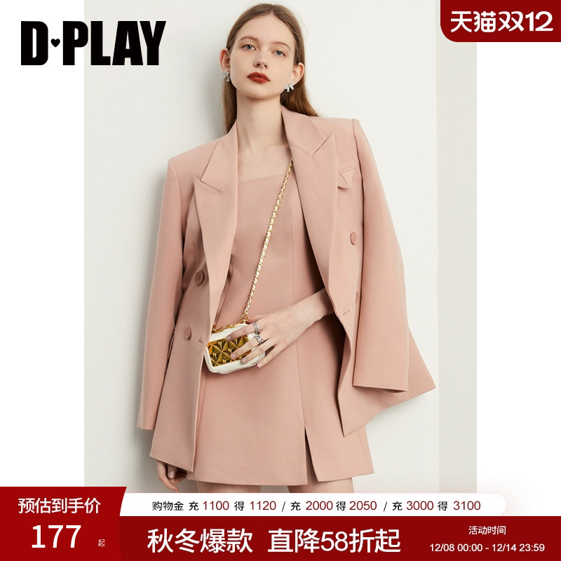 DPLAY2025秋季吊带连衣裙女套装裙复古气质橘粉色通勤裙子
