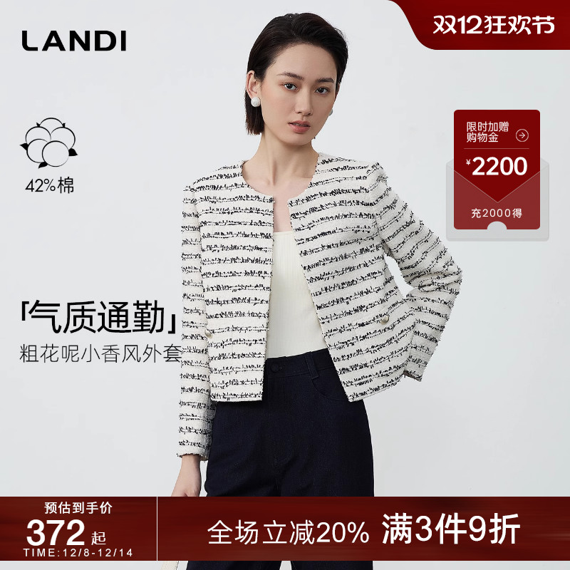 [气质通勤]LANDI撞色粗花呢圆领小香风短外套女套装裙2025秋新品