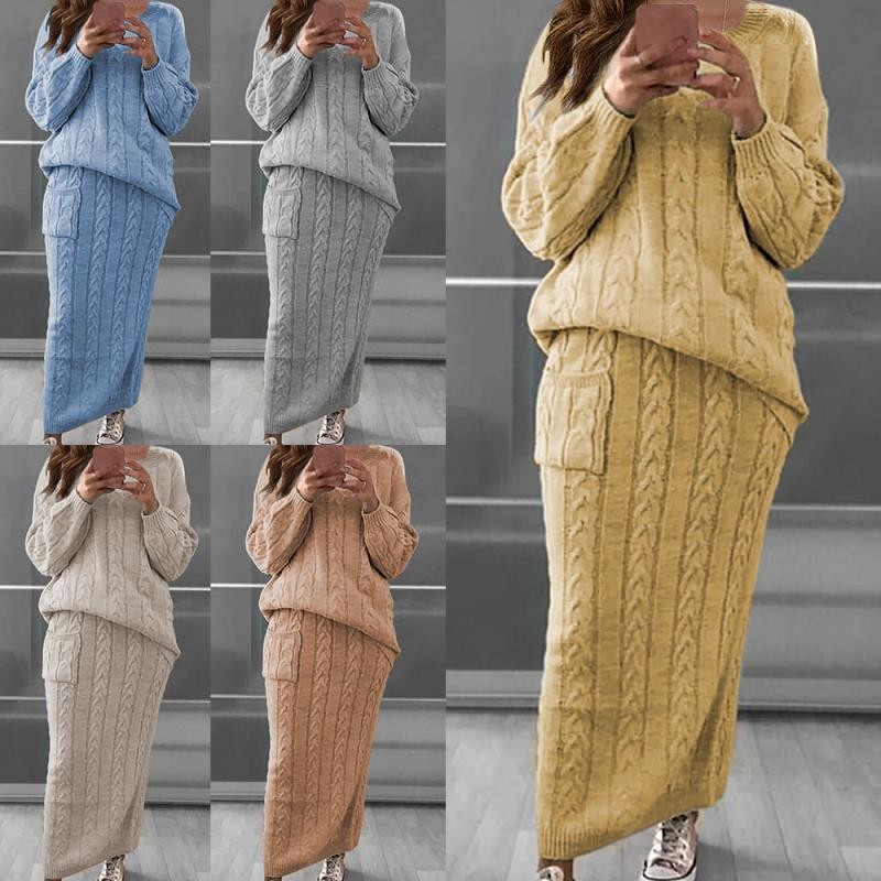 【蜜蜂欢乐社】秋季穿搭一整套女新款针织衫格纹半身长裙两件套装
