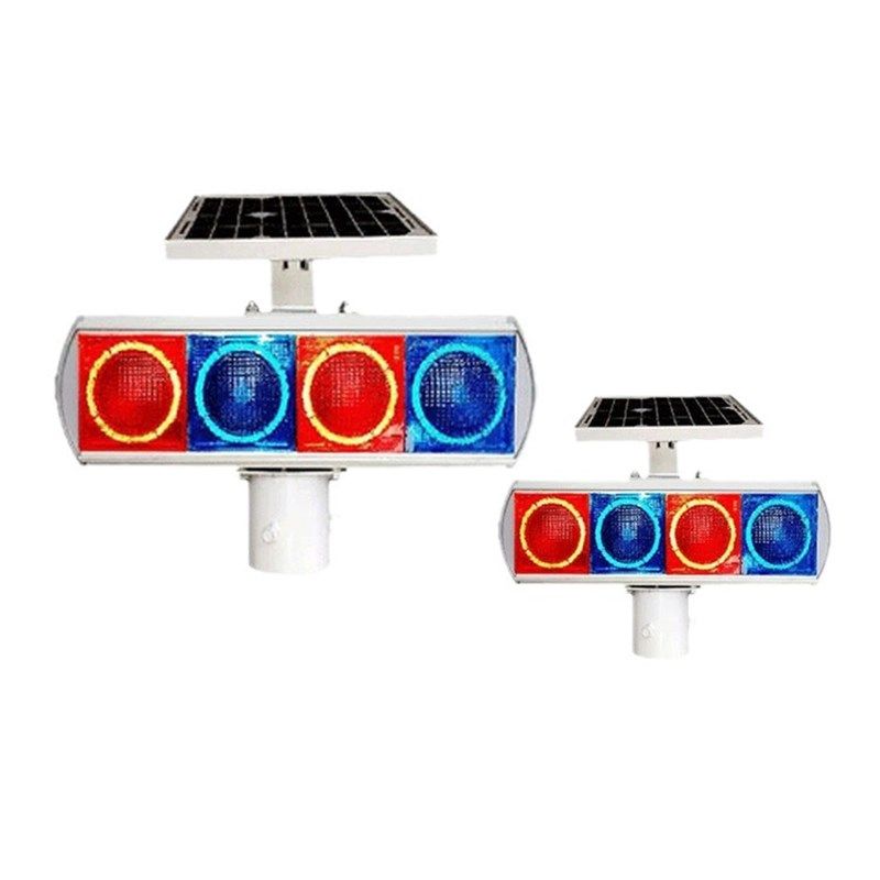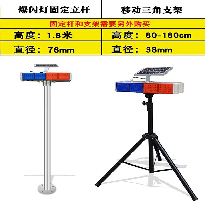 太阳能爆闪灯太阳能交通爆闪灯双面红蓝4灯led爆闪灯施工警示灯