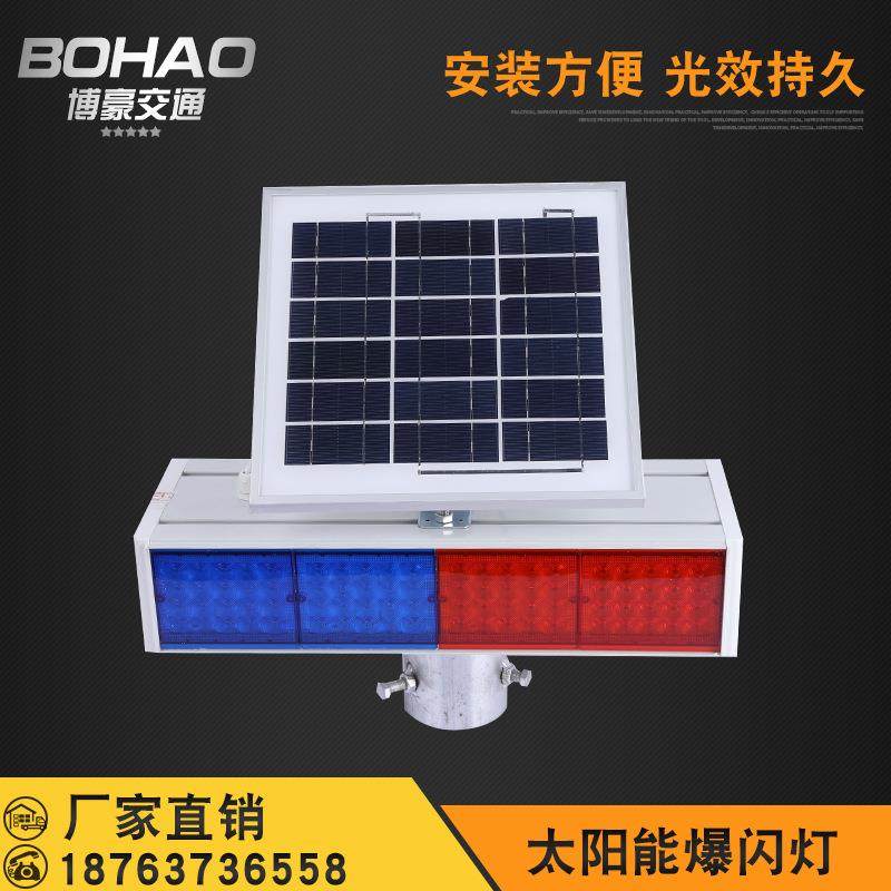 太阳能爆闪灯LED双面红蓝交通指示路障灯夜间道路施工警示闪光灯