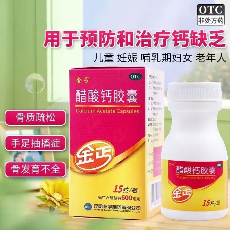 金丐醋酸钙胶囊 0.6g*15粒/30粒 儿童妊娠哺乳期绝经期女老人补钙