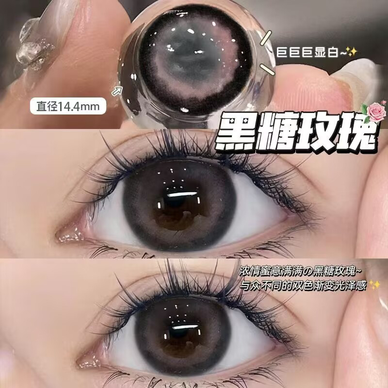 黑糖玫瑰美瞳年抛女大直径隐形眼镜半年抛正品官方旗舰店2024新款
