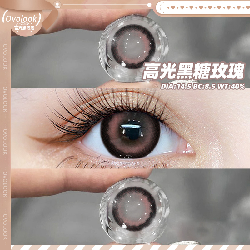 OVOLOOK高光黑糖玫瑰美瞳半年抛大直径混血正品官网旗舰隐形眼镜A