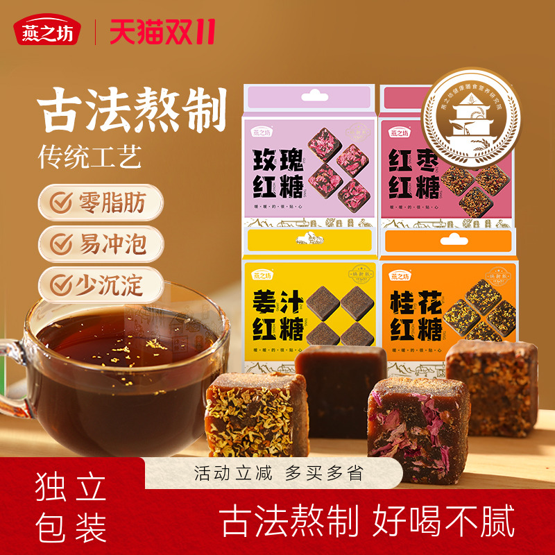 燕之坊红糖216g/盒装玫瑰黑糖桂花味阿胶姜汁女生生理期姜茶红糖