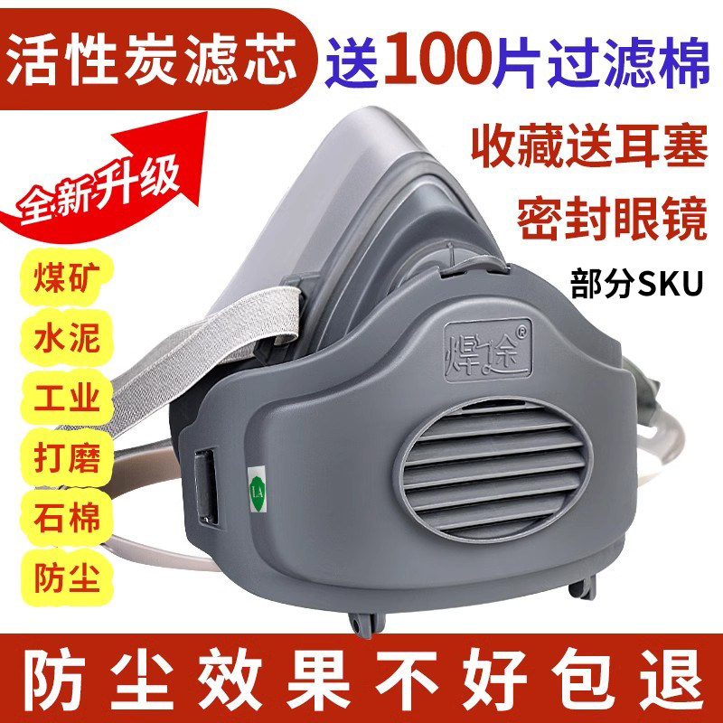 kn95防尘口罩防工业粉尘防重度灰尘打磨电焊煤矿活性炭喷漆头戴式