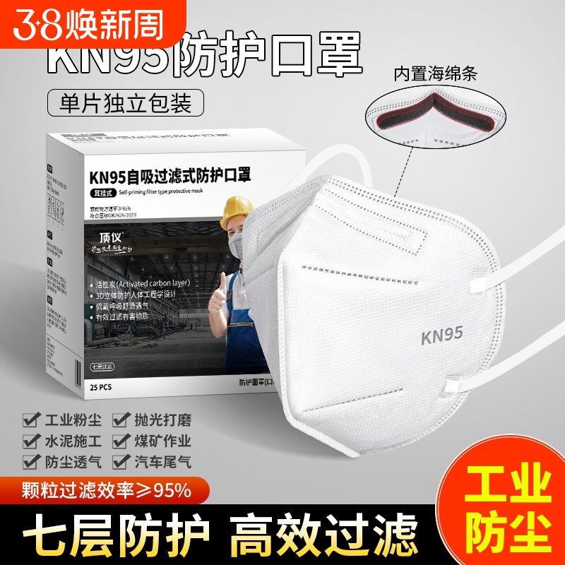 KN95口罩正品n95防尘肺重度防工业级粉尘含活性炭防甲醛打磨专用