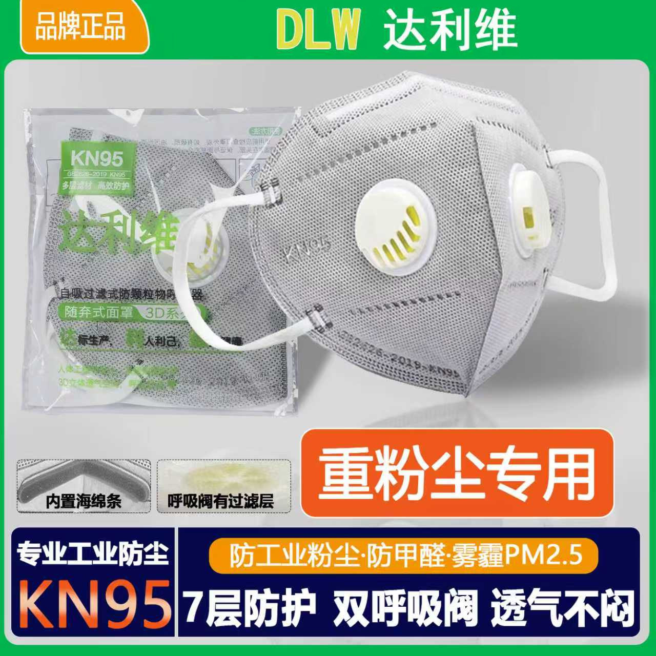 kn95口罩防尘口罩工业防粉尘防尘肺带呼吸阀防甲醛雾霾电焊工打磨