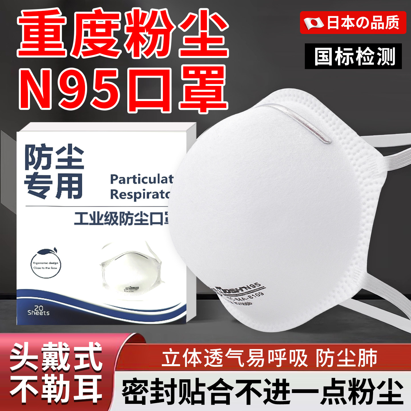 日本防尘口罩防尘肺n95工业级防重度粉尘正品呼吸阀防灰尘打磨工