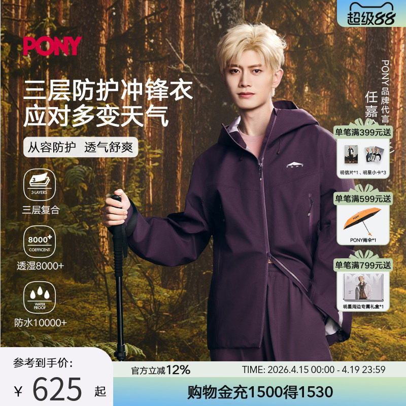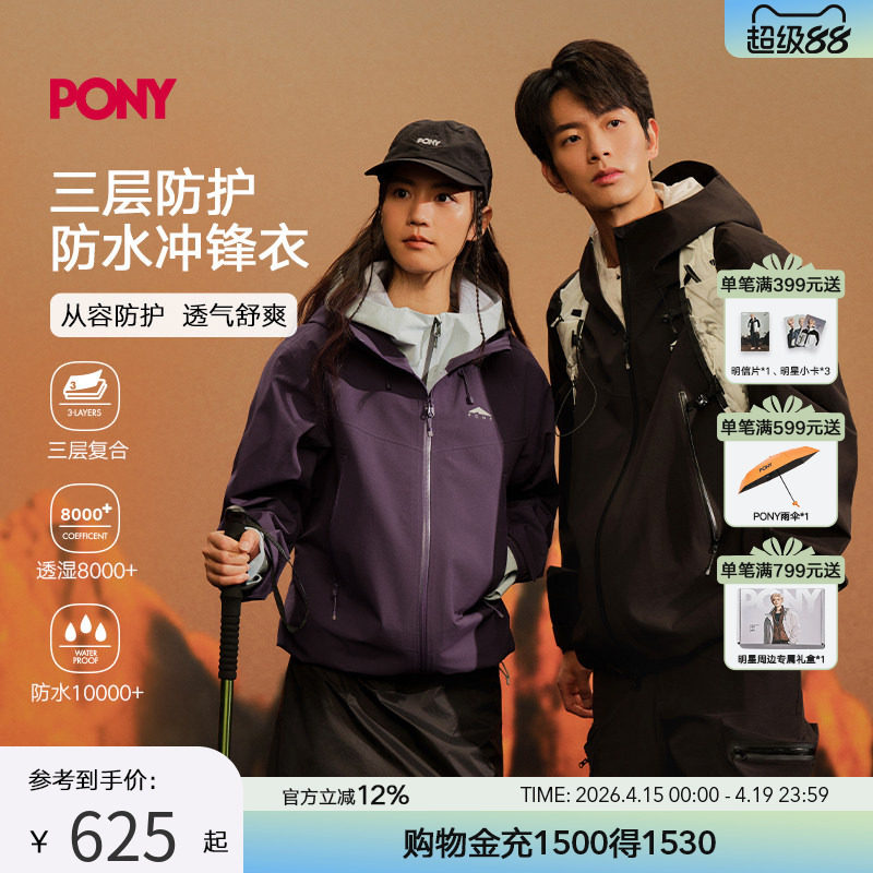【明星推荐】PONY2026年新款冲锋衣三层复合防水透气男女同款夹克