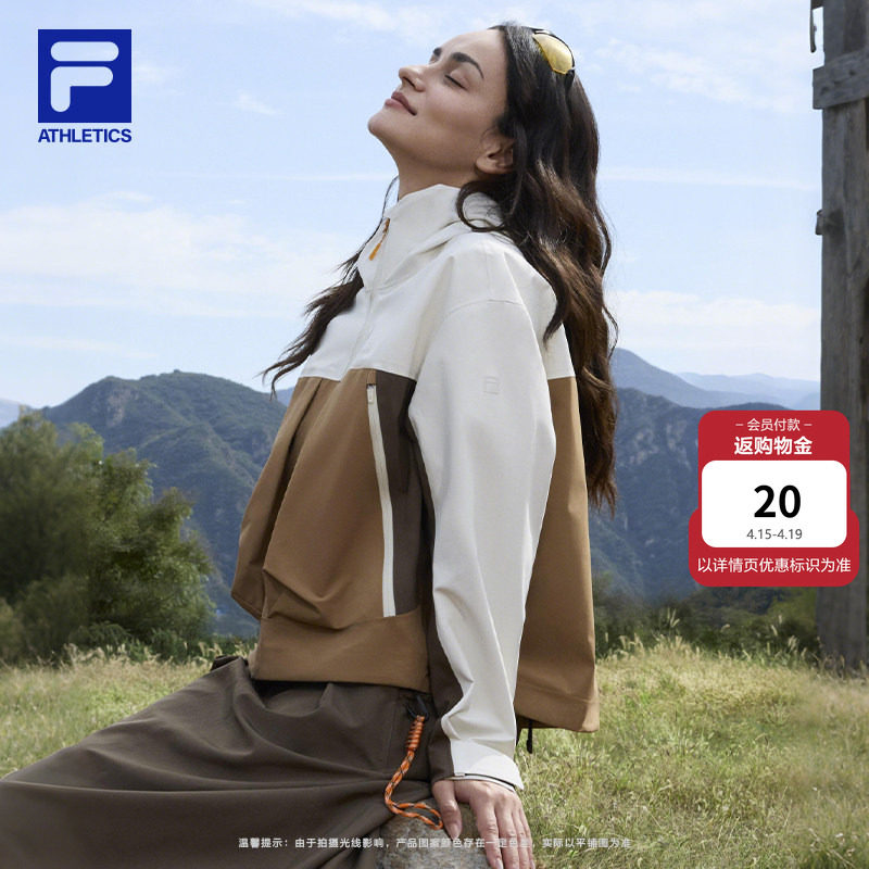 FILA 斐乐官方女冲锋衣2026春季新款户外运动防泼水宽松连帽外套