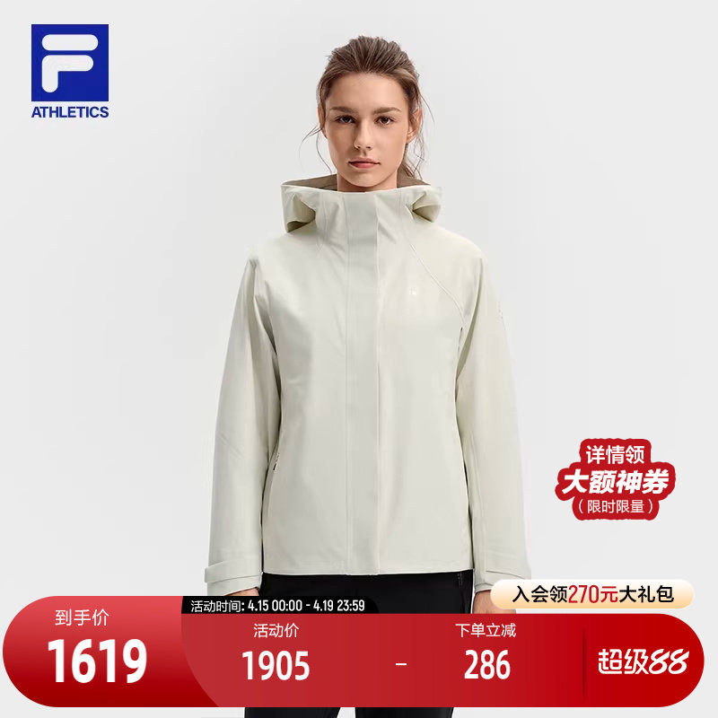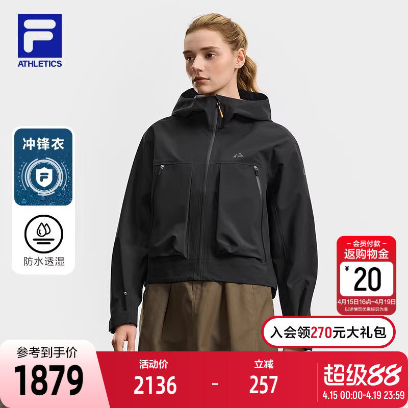 FILA 斐乐官方女士冲锋衣2026春季新款户外运动防水宽松连帽外套