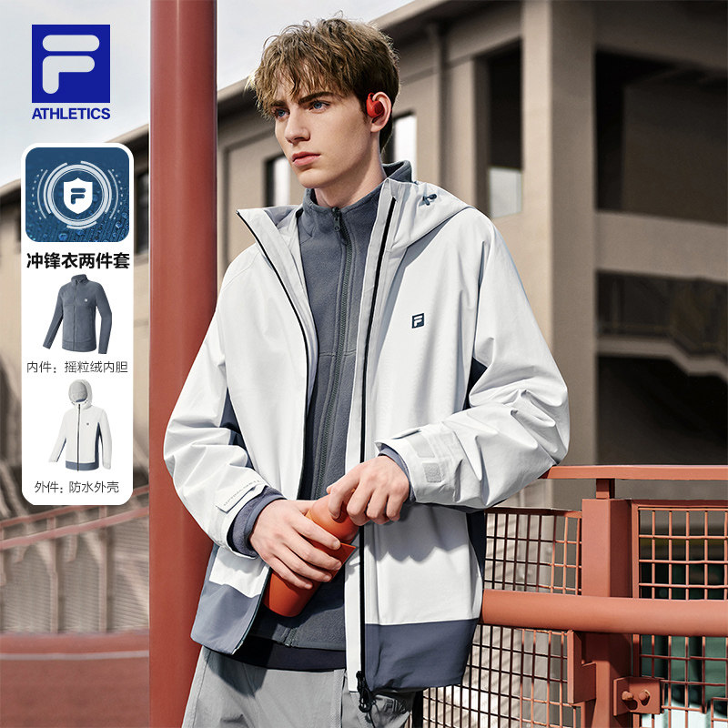FILA 斐乐官方女士冲锋衣两件套2025冬新款健身运动防水连帽外套