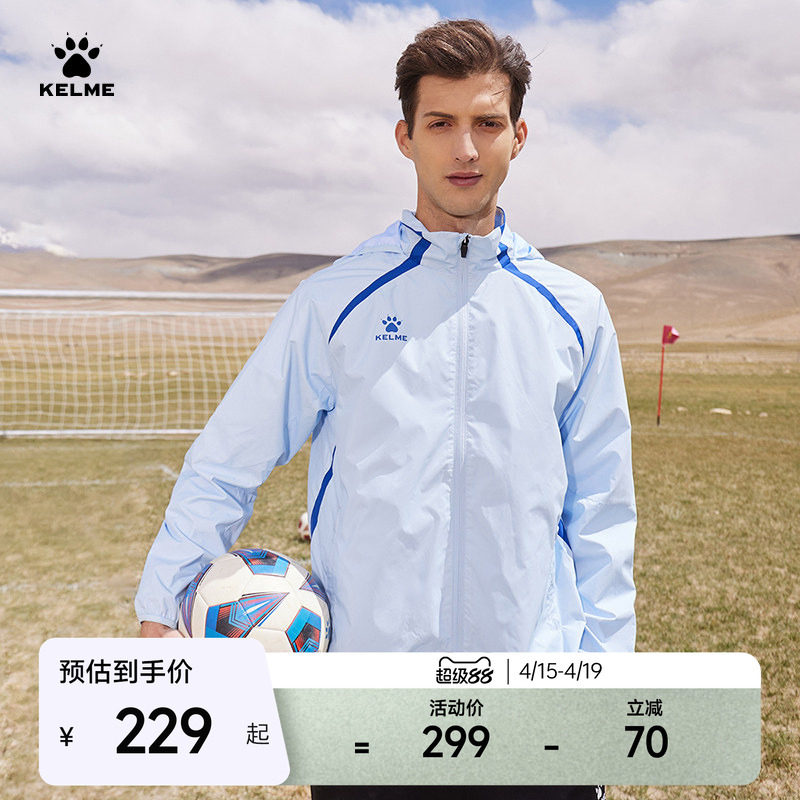 KELME卡尔美足球训练运动风衣26春季连帽开衫风雨衣外套夹克冲锋