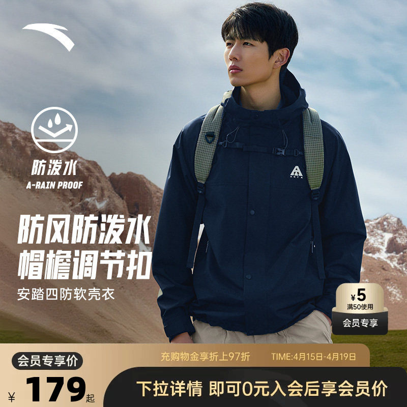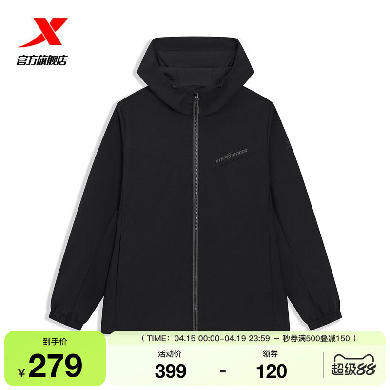 特步羽翼软壳衣2.0男士春季户外冲锋连帽运动风衣登山服防风外套