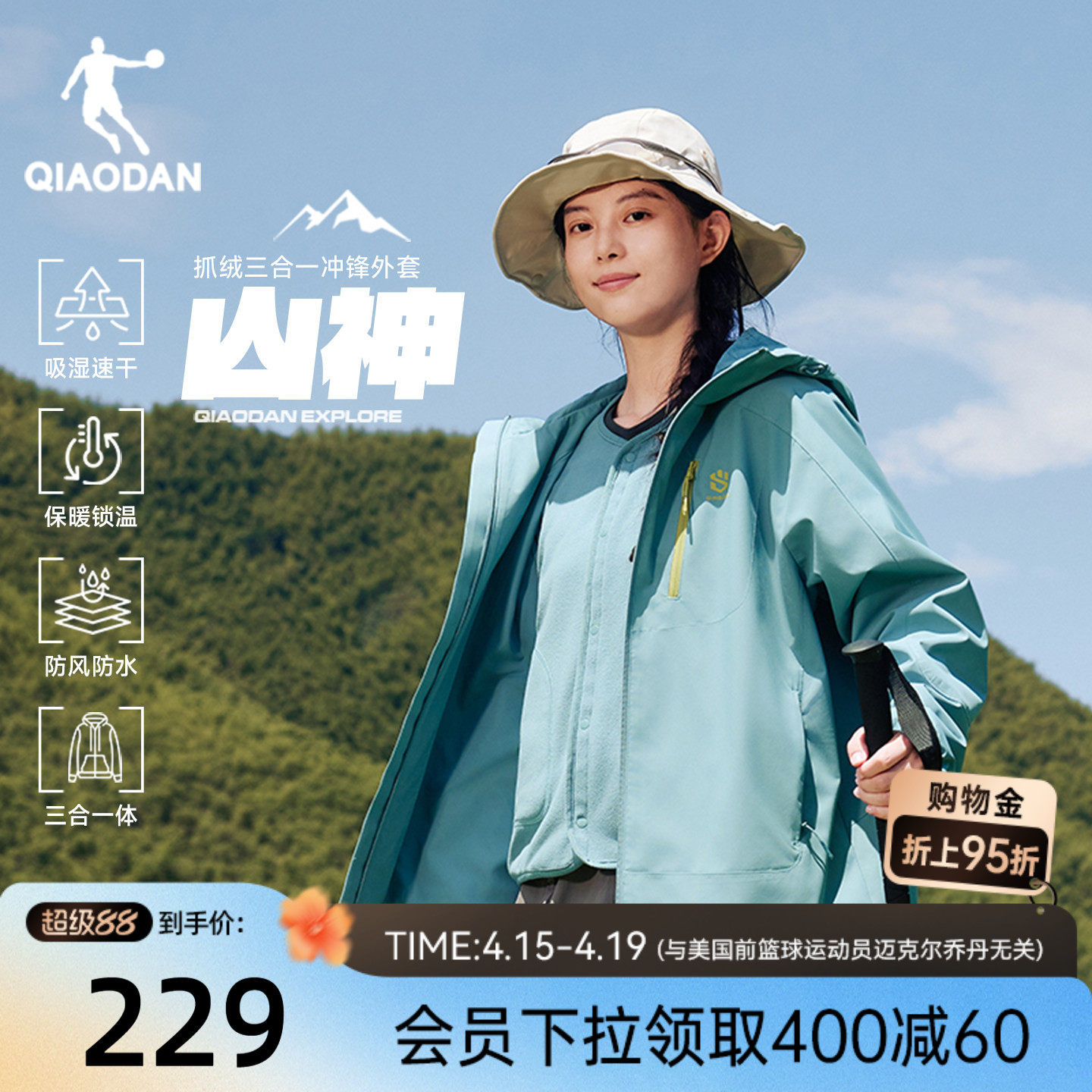 乔丹山神三合一冲锋衣外套夹克防泼水男2026春季防风保暖官方正品