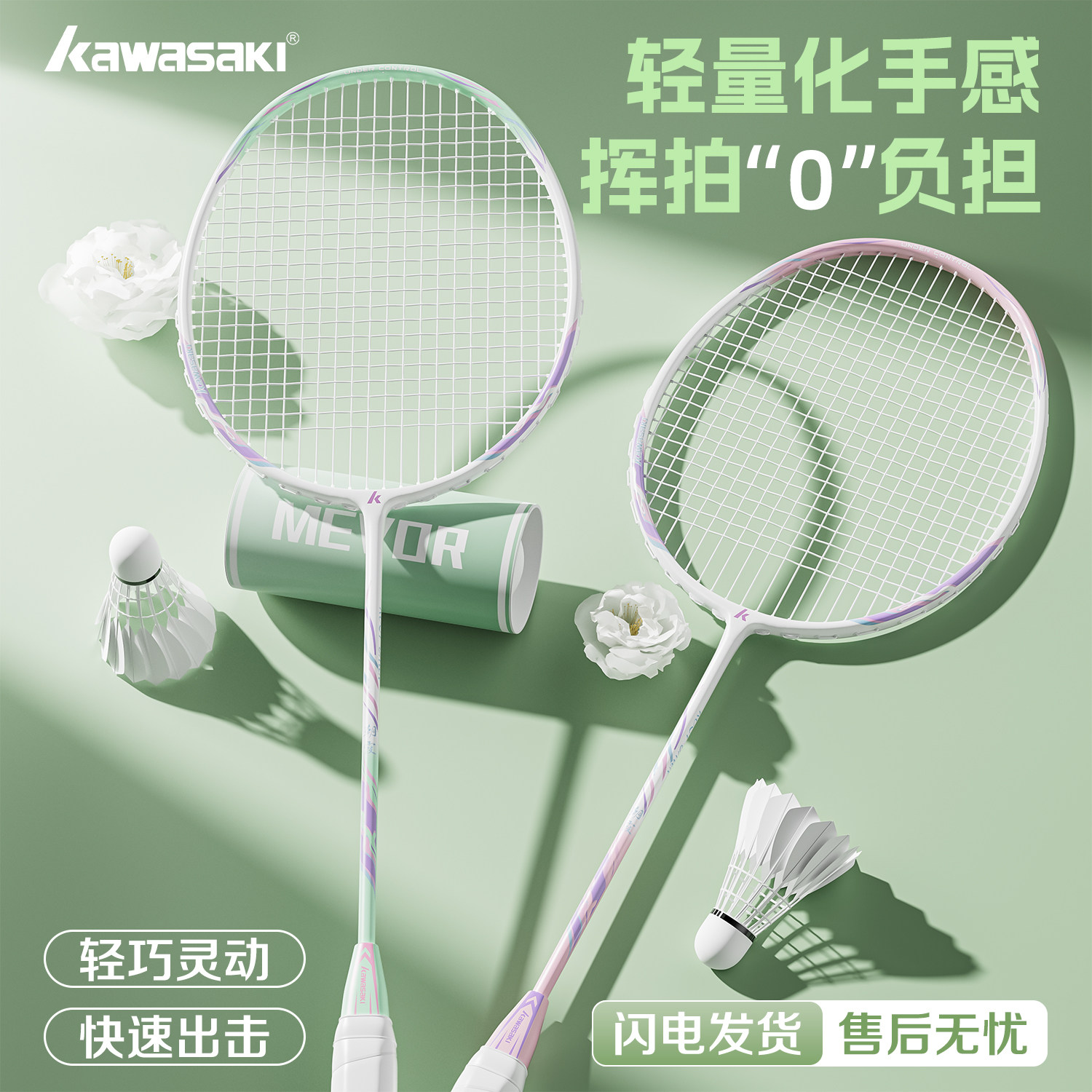 川崎羽毛球拍官方正品碳素纤维中杆超轻全高颜值男女学生初学双拍