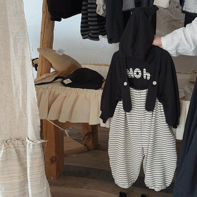 女童套装秋2025新款儿童宽松百搭字母带帽卫衣洋气女孩条纹背带裤