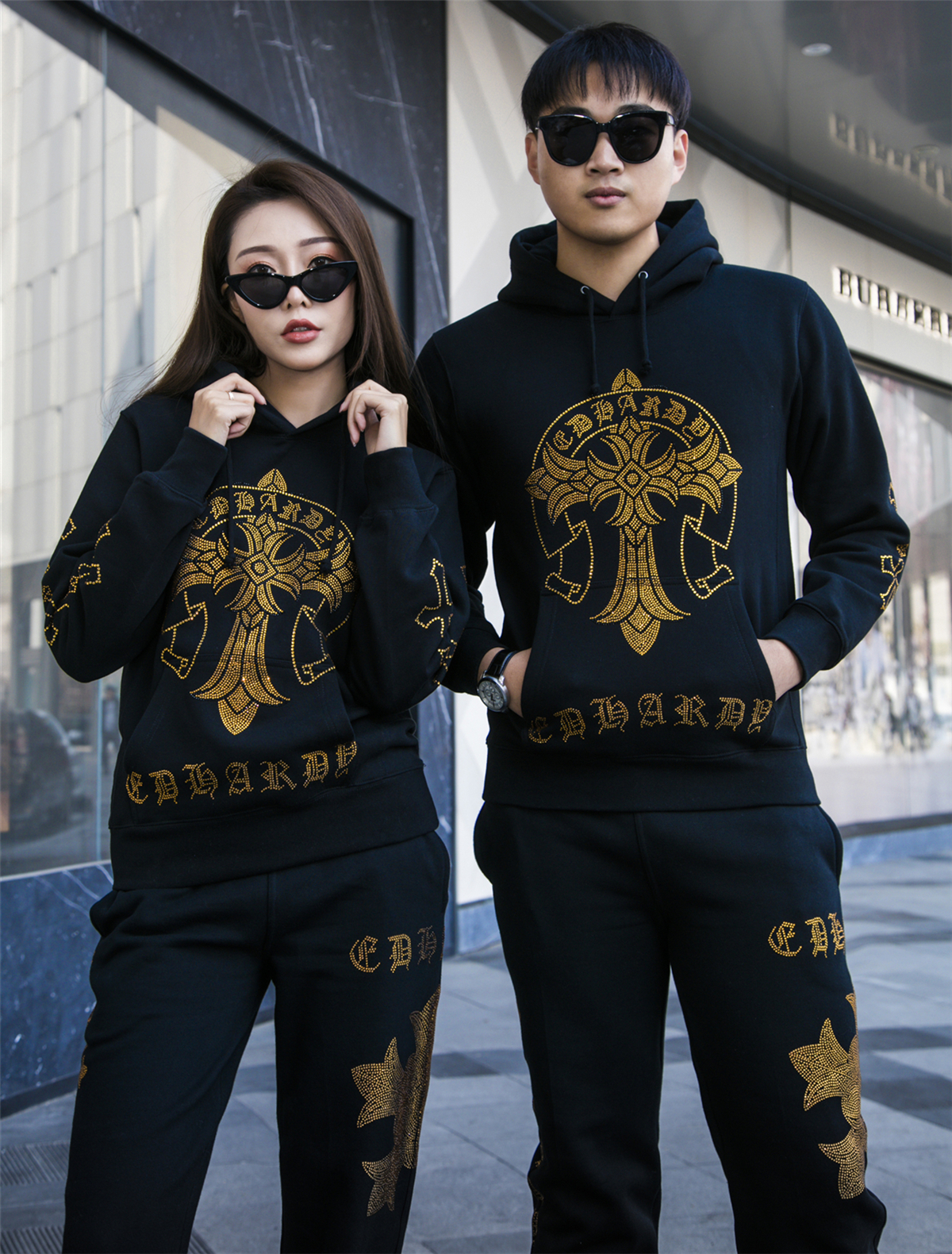 - 天鹅绒卫衣套装女