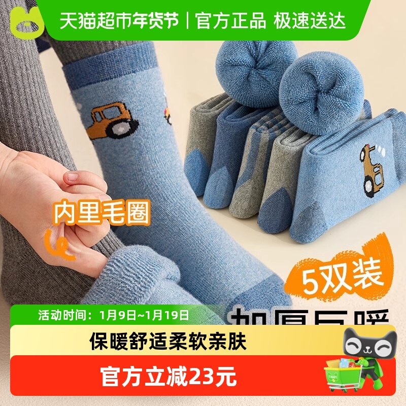 儿童袜子冬季加厚中筒袜男童冬天纯棉毛圈袜男孩宝宝大童棉袜新款