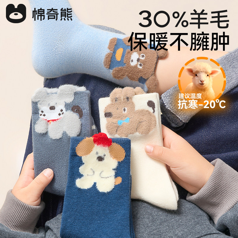 儿童袜子男童冬款加厚长筒羊毛袜男孩中大童冬天保暖棉袜宝宝童袜