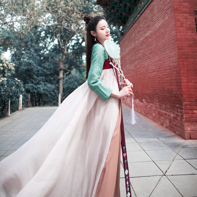 【5折】棉麻记国风改良汉服长裙春季款古装连衣裙齐胸襦裙仙女裙