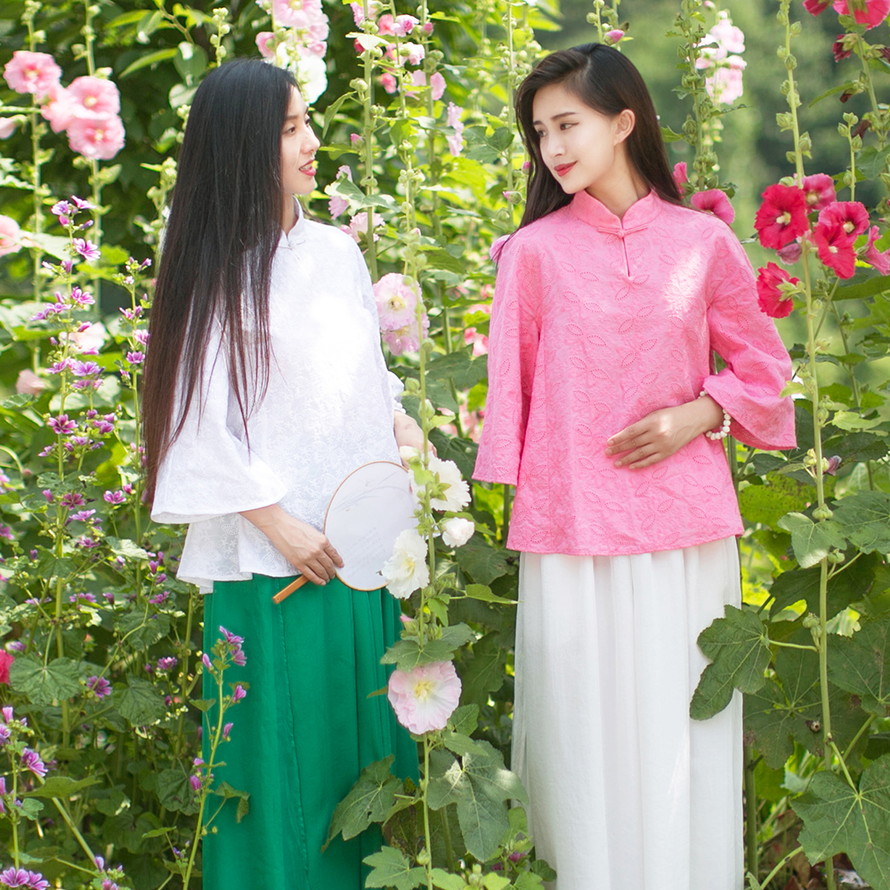 【6折】棉麻记民族风小衫2025镂空绣花棉中式盘扣上衣娃娃衫