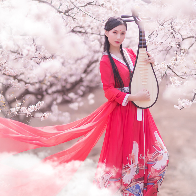 【5折】棉麻记改良汉服刺绣长裙女春款国风红色连衣裙气质裙子仙