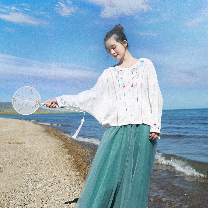 【6折】棉麻记国风雪纺衫女春夏复古汉服小衫上衣百搭半身裙套装