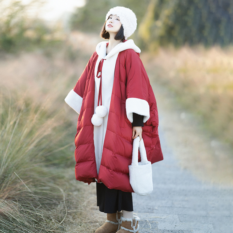 【一骑红尘】复古红国风加厚羽绒服女冬季宽松白鸭绒连帽斗篷外套