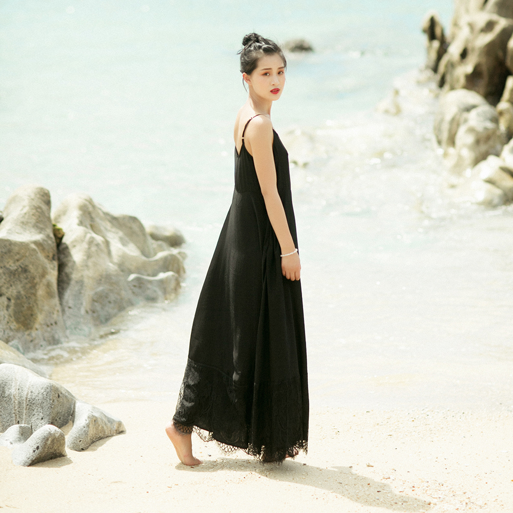 棉麻记吊带 A字裙2025夏新款蕾丝宽松内搭长裙子显瘦无袖连衣裙女