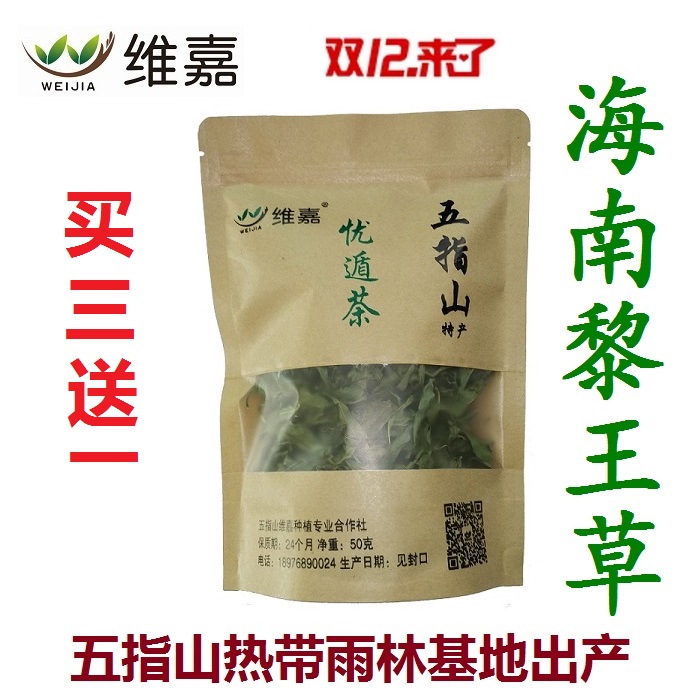 海南五指山忧遁草黎王草茶优盾优顿草干叶鳄嘴花茶100克全国包邮