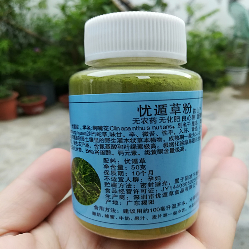 铁山忧遁草粉优顿草优盾草黎王草鳄嘴花优遁草粉剂细腻50克一瓶