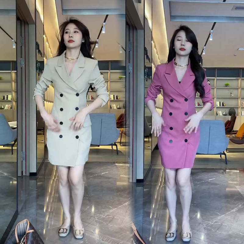 网红爆款时尚西服连衣裙女2023年春季新款韩版显瘦西装领休闲裙子