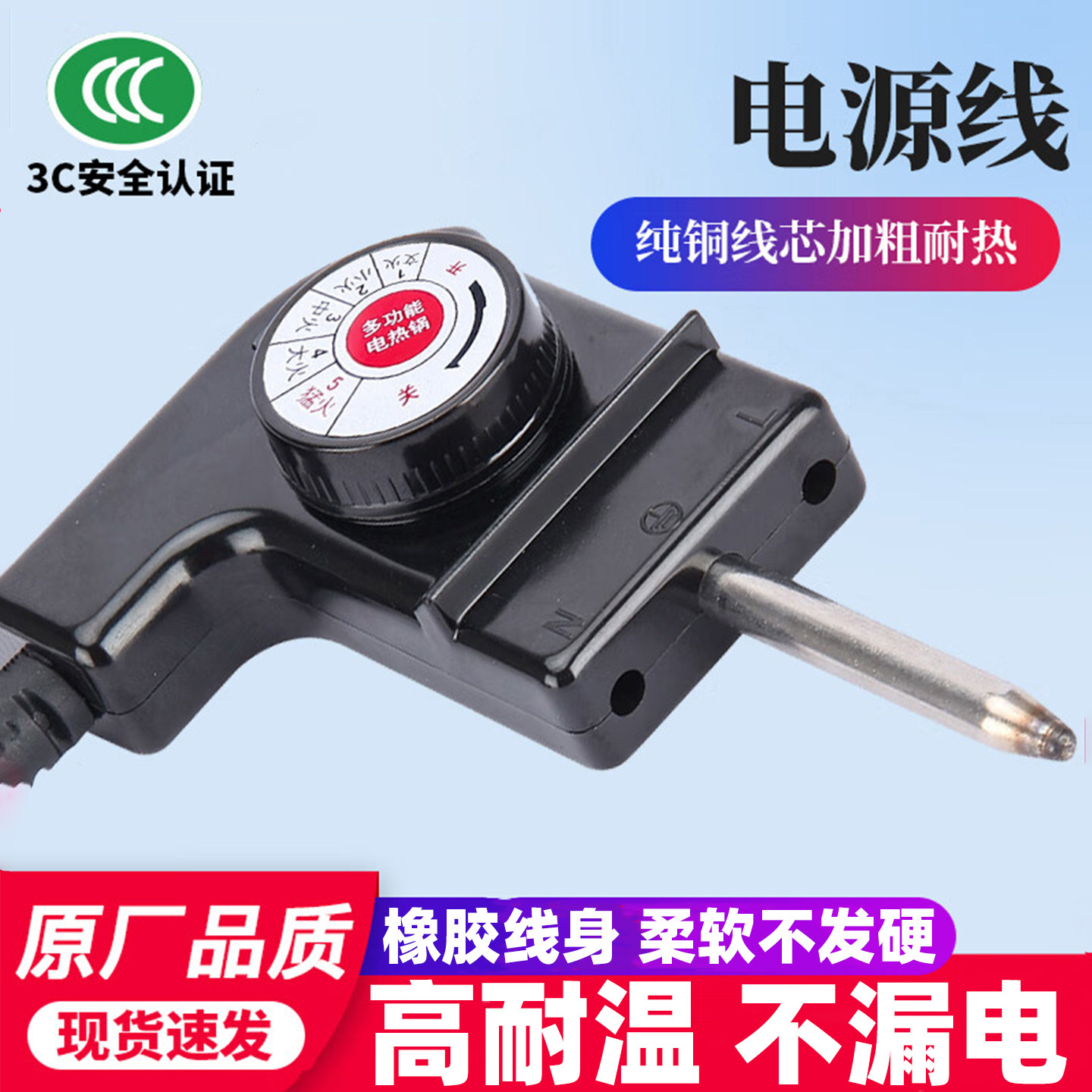 韩式多功能电热锅电源线 电炒锅插头 电火锅调温线调温耦合器配件