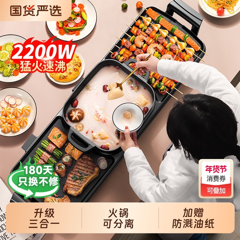 韩式多功能电烧烤炉家用涮烤一体锅无烟电烤盘不粘烤肉机鸳鸯火锅