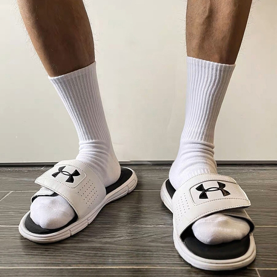 7双/袜子男士纯棉中高筒袜白色加厚毛巾底男生运动长筒袜防臭短袜