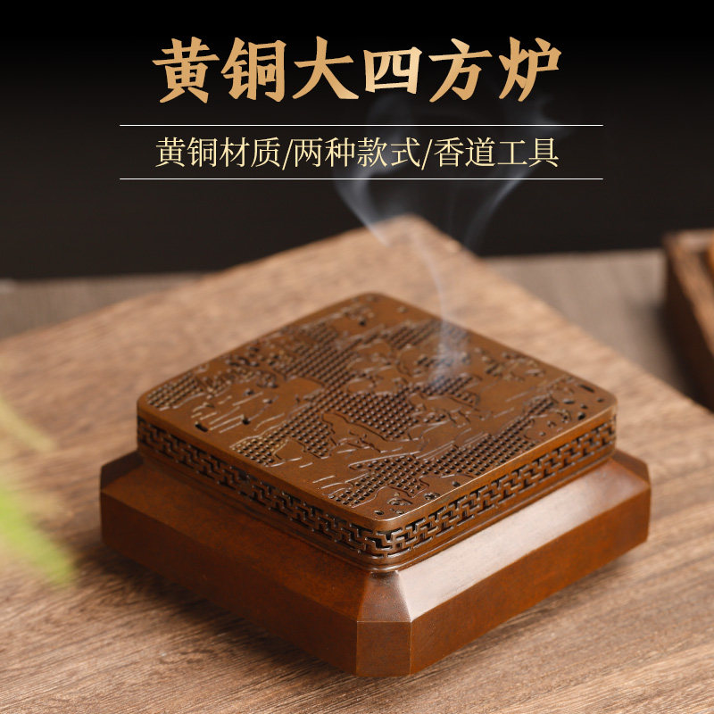 紫铜大四方网盖熏香炉 香薰香拓手工纯紫铜香炉盘香非陈巧生香炉