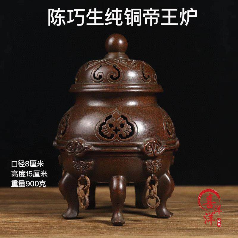 古董文玩纯铜紫铜熏香炉家用复古陈巧生帝王炉艾灸檀香怀旧老物件