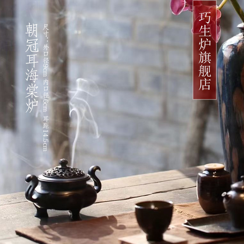 官方陈巧生炉直营店巧生炉博物馆朝冠耳海棠小熏炉铜炉仿古小香炉