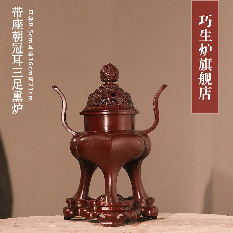 陈巧生香炉旗舰店带座朝冠耳三足熏炉家用熏香炉手工铜炉收藏送礼