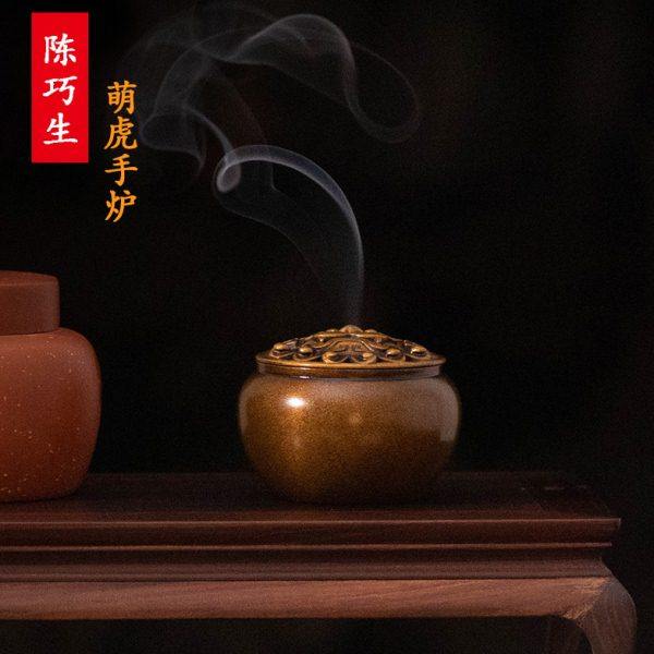 见素香坊热销陈巧生制萌虎手炉袖珍铜香炉雅器摆件熏炉巧生炉A098