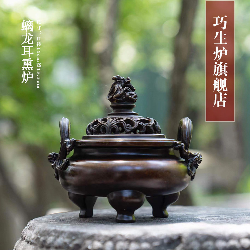 官方新款陈巧生旗舰店香炉经典代表 螭龙耳熏炉 宣德炉熏炉铜炉