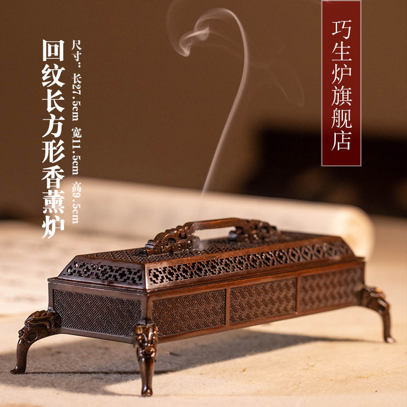 官方陈巧生炉旗舰店长回纹卧香薰线香炉铜炉书房办公室摆件收藏品