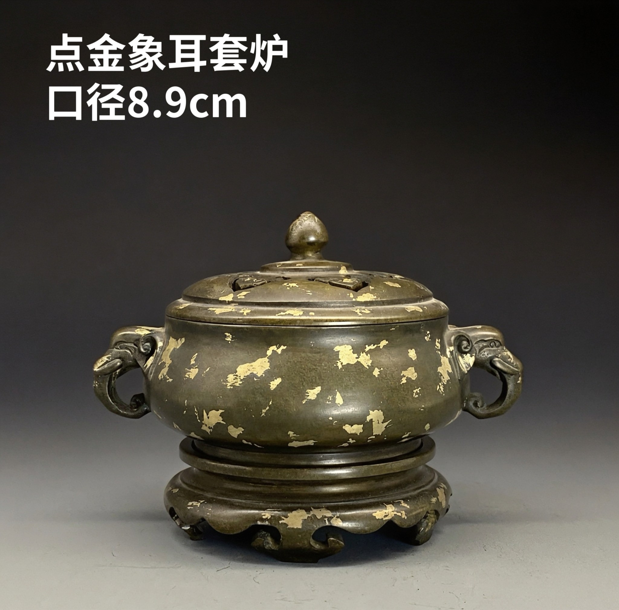 伴庐香堂 陈巧生 点金象耳套炉琴炉经典铜香炉香薰炉陈口径8.9cm