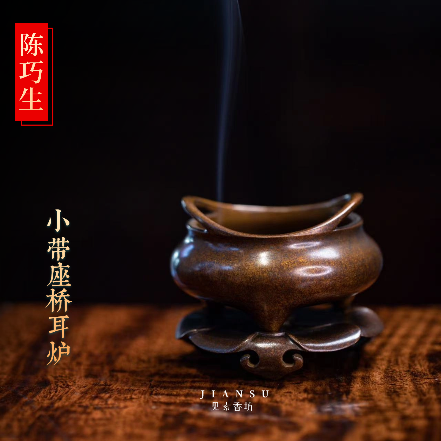 见素香坊 陈巧生小号带座桥耳炉 苏工仿宣德炉经典器型铜香炉B749