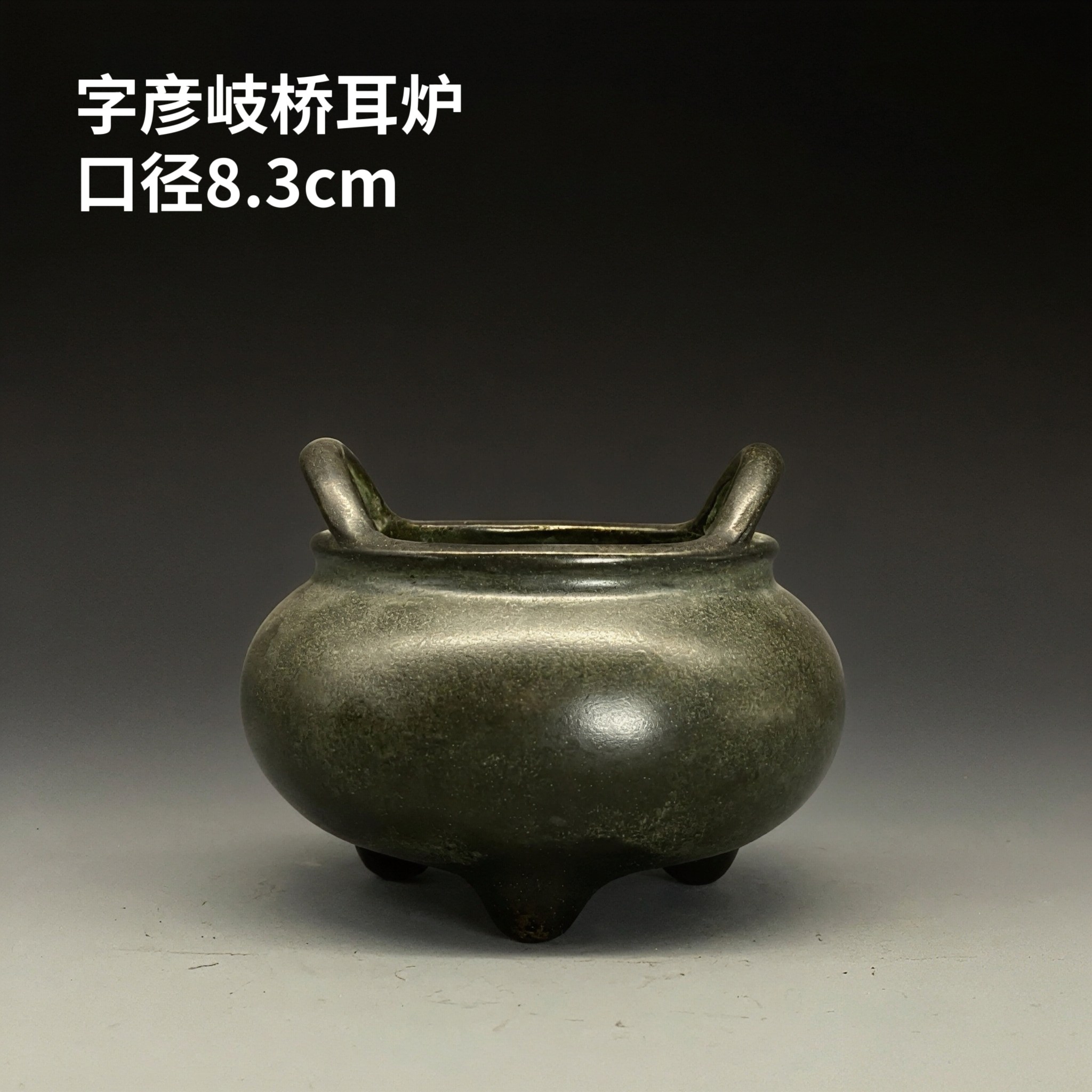 伴庐香堂 陈巧生 字彦岐桥耳炉经典铜香炉香薰炉陈设口径8.3cm