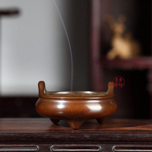 见素香坊怀古系列 点金戟耳圈足炉 恕园仿古款陈巧生铜香炉F234-7