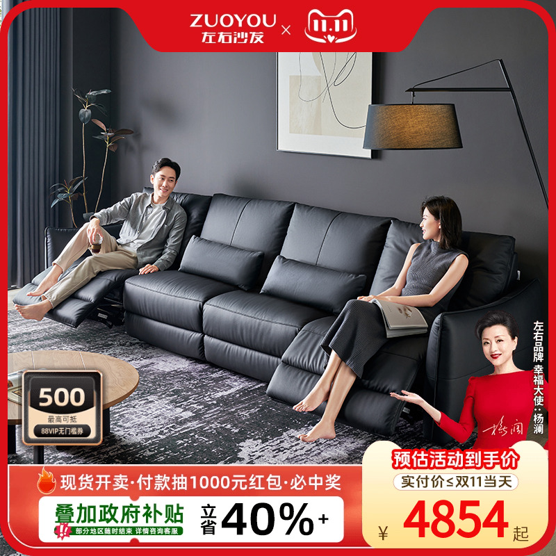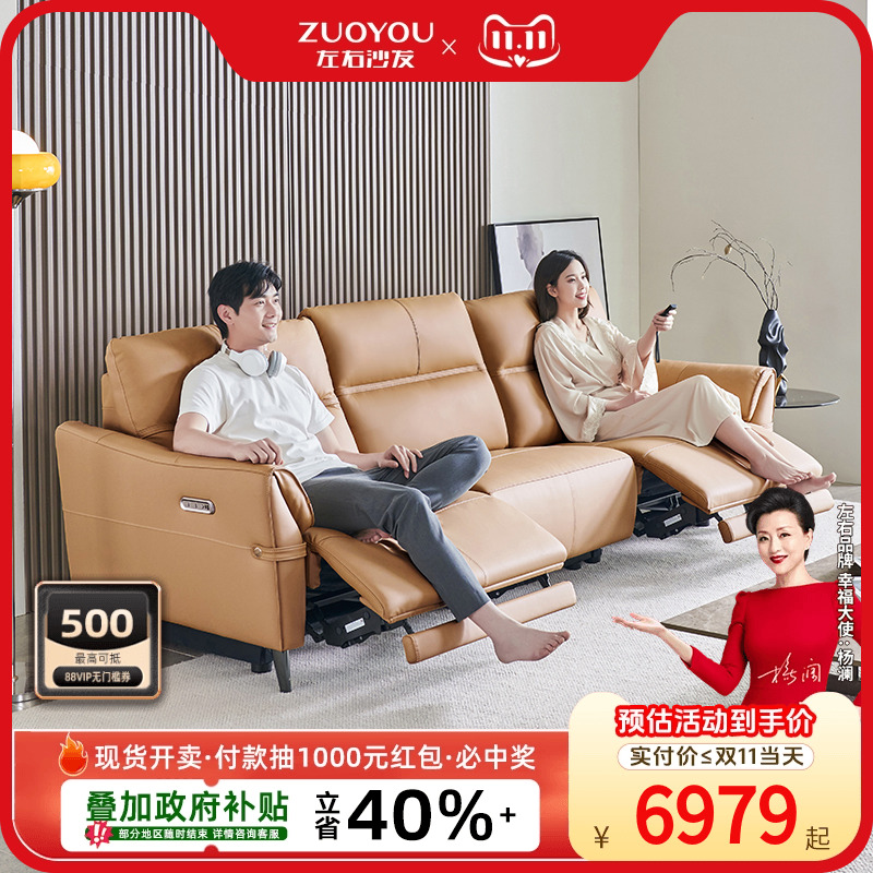 左右2025新款真皮电动沙发家庭影院客厅零靠墙智能功能沙发6066