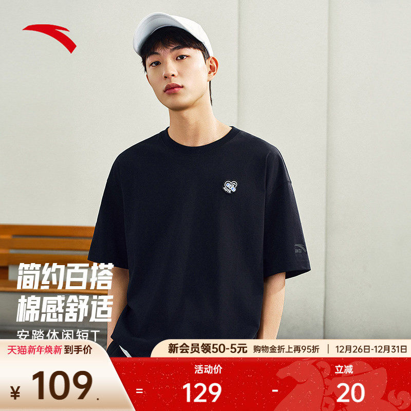 安踏针织短袖t恤男女同款夏季新款情侣款休闲百搭套头打底衫上衣